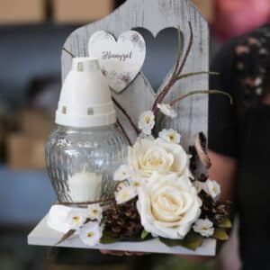 A kegyeleti termékek készítése során mindig a megbecsülés és tisztelet vezérel minket, hiszen tudjuk, hogy egy ilyen termék többet jelent egy egyszerű díszítő elemnél: ez az emlékek megőrzésének és a szeretet kifejezésének eszköze. Miért választana tőlünk? Mert nálunk minden egyes termék olyan gondossággal készül, amely a legnagyobb tisztelettel adózik az emlékeknek. Kézműves munkánk eredményeként minden darab egyedi, különleges és tartós, így biztos lehet benne, hogy az Ön által választott sírdísz vagy fa táblácska sokáig megőrzi szépségét.