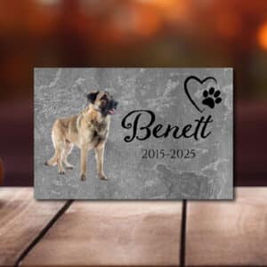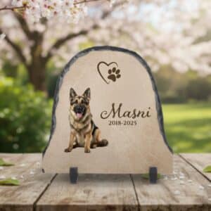Kutya emléktábla, sírtábla, időjárásálló, saját képpel, szürke