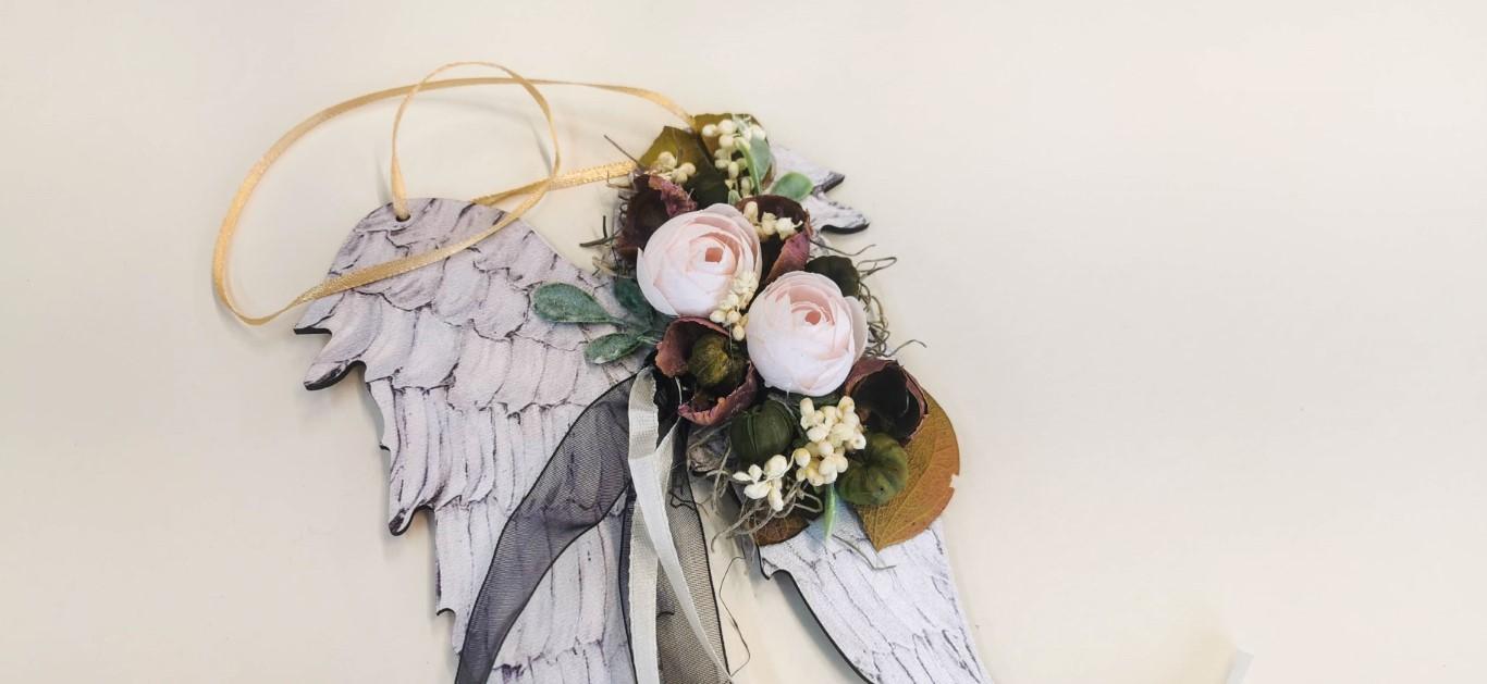 Kegyeleti dísz angyalszárny akasztható – Púder – 19.5cm