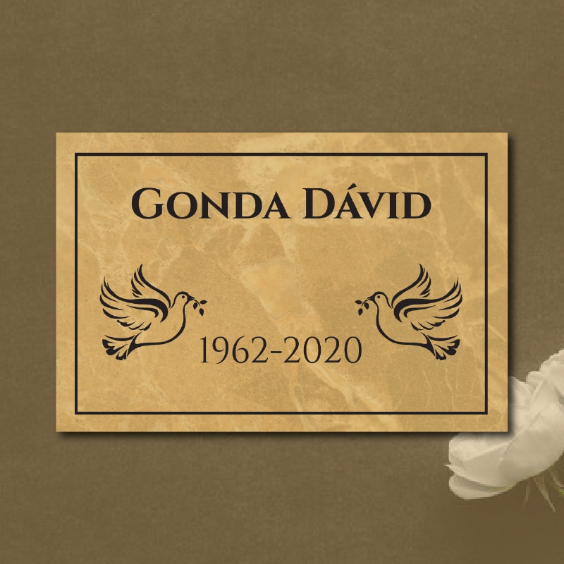 Az időjárásálló arany–márvány hatású sírkő tábla kiváló választás azoknak, akik esztétikus, tartós és személyre szabható megoldást keresnek sírkő felületek díszítésére. Az arany–márvány mintázat eleganciát sugall, az anyag pedig biztosítja, hogy a tábla hosszú éveken át megőrizze fényét és szépségét.