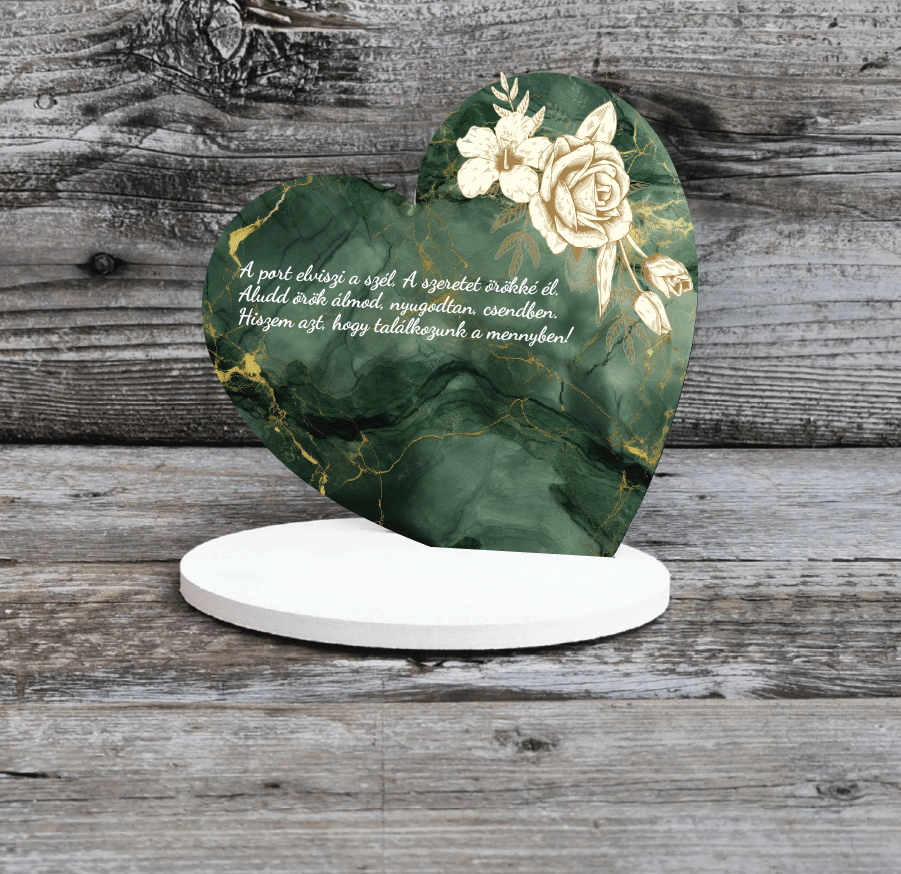 Kezdőlap Kegyeleti termékek Kegyeleti táblácskák Talpas kegyeleti szív – Zöld márványos 19cm