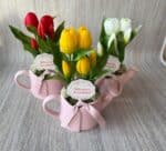 Nőnapi ajándék, élethű tulipán kerámia locsolóban