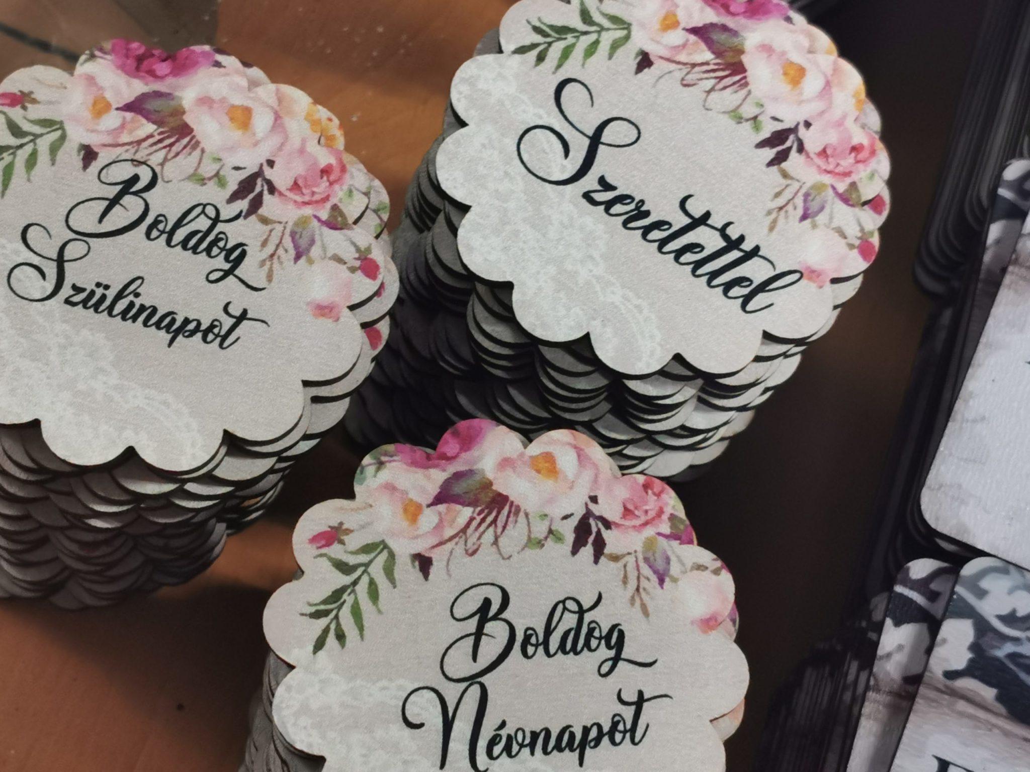 A lézervágott, finom mintázatú fa ajándéktáblácska 3mm vastag MDF anyagból készül lézervágással, egyedi nyomtatott felirattal is kérhető, így igazán személyre szabott meglepetést alkothatsz. Válaszd a kínálatunkból elérhető feliratokat, vagy kérj egyedi szöveget, hogy még különlegesebb legyen!