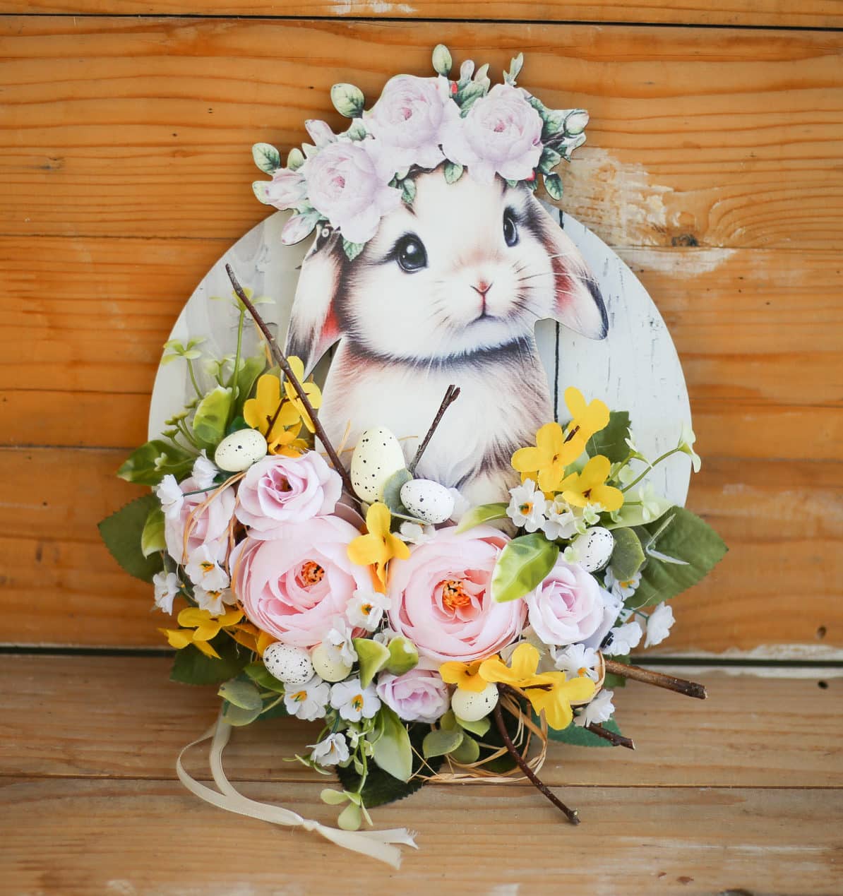 Tavaszi ajtódísz húsvéti nyuszis DÍSZÍTETT